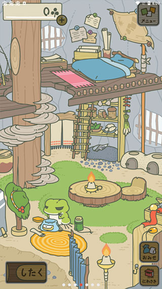 1. 为爱蛙打包行囊——在房间中点击“收拾”,自由搭配便当、护身符与旅行道具;