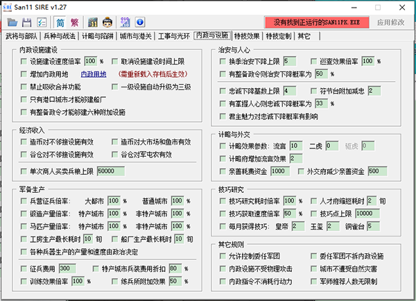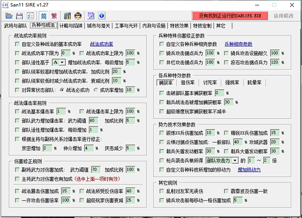 三国志11修改器sire版,不是普通意义上的“一键改数值”辅助,而是面向深度策略玩家打造的专业级游戏定制平台。它深度融合《三国志11》原始数据结构,支持从武将个体成长、战法逻辑底层、城市兵力模型到AI行为规则的全维度编辑。无论你是想还原历史名将风采、挑战极限难度剧本,还是将SLG彻底重构为塔防/养成/战法沙盒,SIRE都能提供稳定、精准、可逆的修改能力——它不止帮你“通关”,更赋予你重新定义《三国志11》的权利。