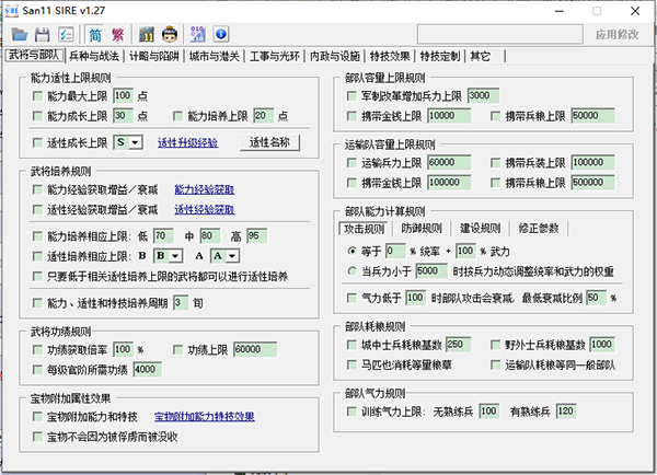1. 武将系统深度调控:自由调整能力值、成长率、适性类型与上限、部队运输力、带兵数量等关键参数,打造专属神将成长路径。