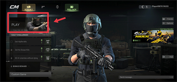 1、启动游戏(建议使用稳定加速器),主界面点击【Play】开始智能匹配;