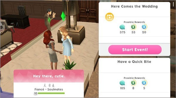 ① 亲密度达8级后触发求婚选项;对话栏出现「Here comes the wedding」即进入婚礼任务链;