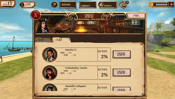 ? 酒馆——人才中枢!招募身怀绝技的水手与智谋过人的大副,注意查看其攻击加成与特殊技能——一位神级大副,胜过十门重炮;