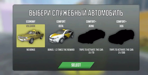 4、从多款出租车中挑选爱车(建议新手选刹车稳、转向灵的车型)