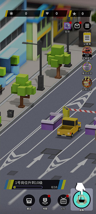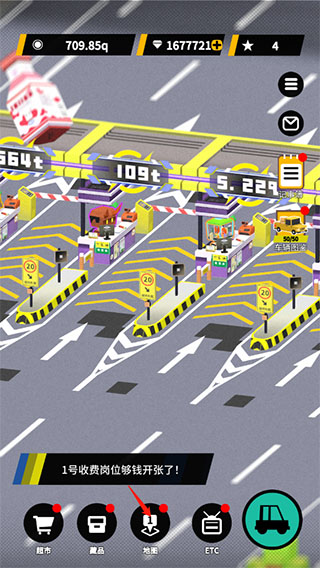 2、点击紫色收费岗亭,再轻点右下角【开张】按钮——你的收费站,正式挂牌营业!
