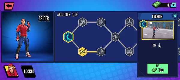 5、金币不只买皮肤!用于解锁「蜘蛛感应强化」「蛛网麻痹」「空中连击链」等主动/被动能力,构建你的专属战斗流派;