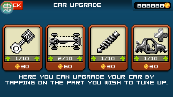 ? 真正的DIY赛车工坊:从9款基础车型起步,自由组合底盘、轮胎、引擎、喷漆——连每一颗像素都可单独上色,打造全球仅此一辆的专属座驾!