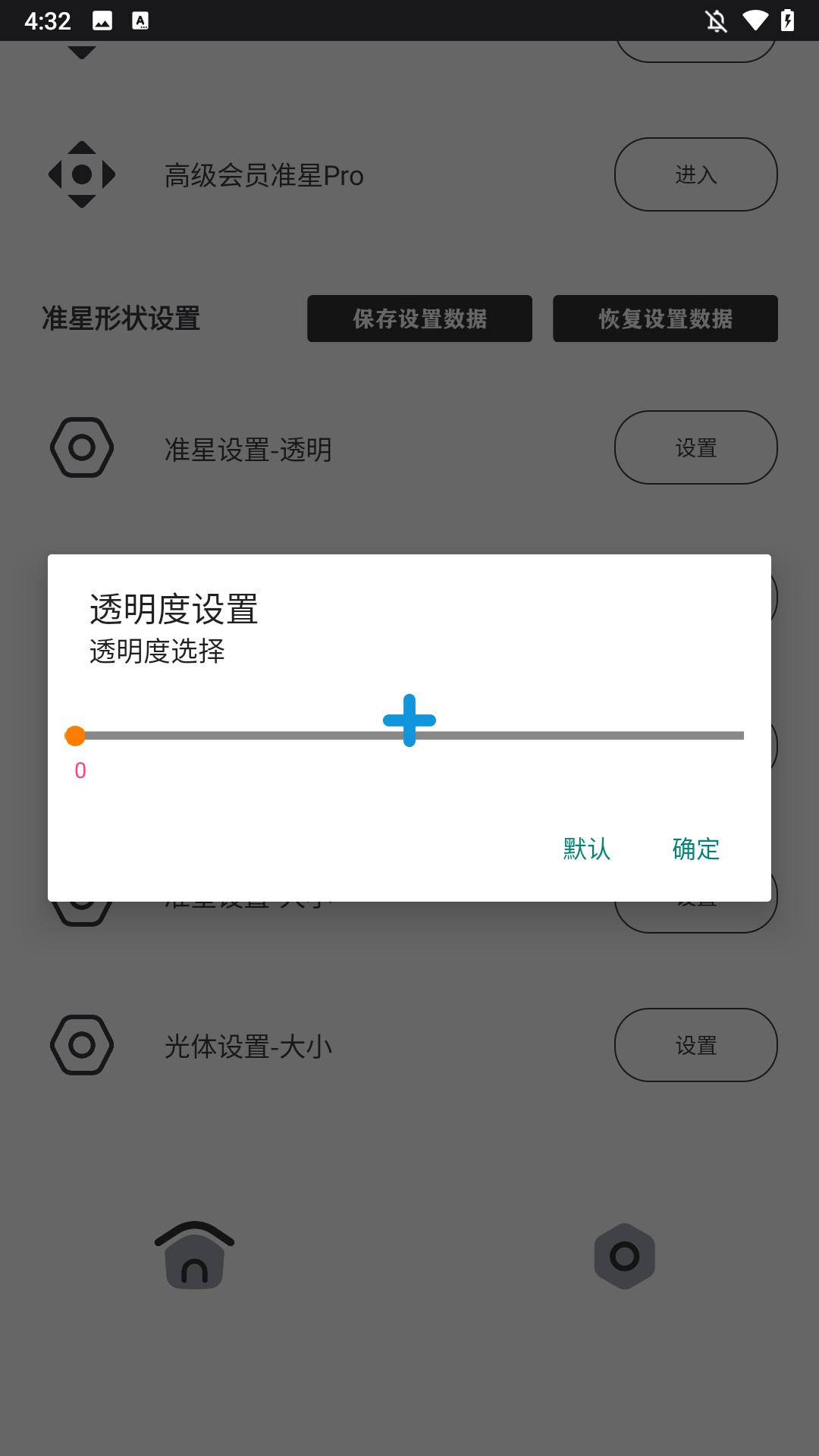 4、拖动滑块精细调节:准星大小(适配不同屏幕DPI)、透明度(兼顾辨识度与视野通透性)