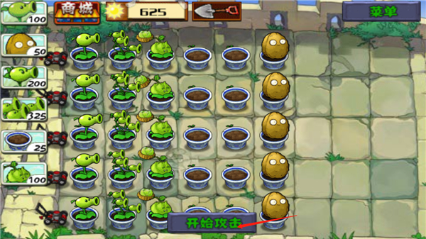 3、从植物图鉴中精选6种单位,构建你的长城防线;