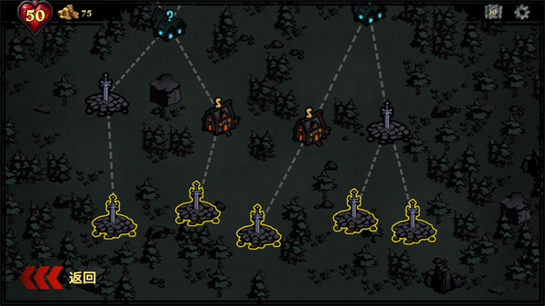 在地图节点中选择初始关卡与首条分支路径——不同路线不仅影响敌人类型,更触发专属奇遇(如神秘商人、陷阱工坊、诅咒祭坛),策略从开局就已开始。