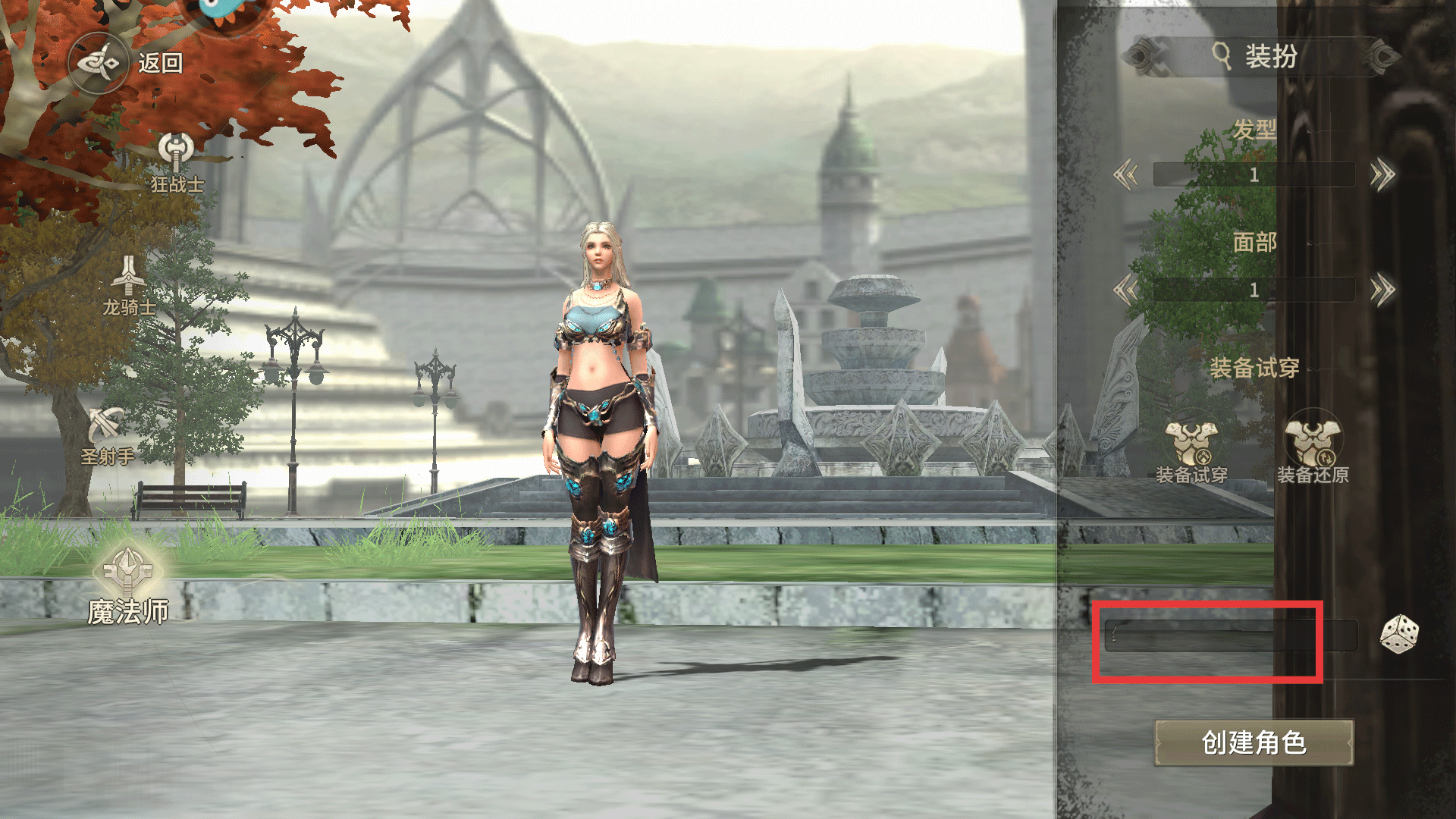 2、创建角色时,从狂战士、龙骑士、圣骑士、魔法师中任选其一,并自定义角色名;