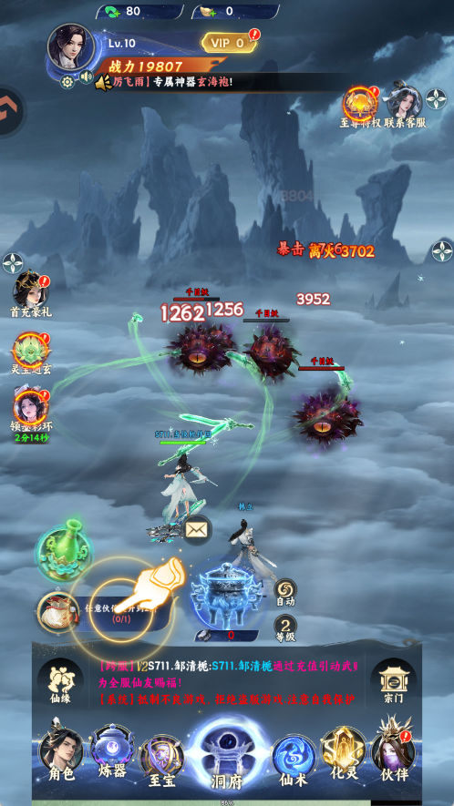 登录即送「新手豪礼」:创建角色→完成基础指引→上线10分钟自动发放SSR品质伙伴【墨彩环】+筑基灵石×5000+稀有功法《青元剑诀》残卷!主线任务智能引导,一键激活「虚天鼎」系统,解锁炼器、炼丹、灵兽、洞府等核心养成模块。战斗采用「智能自动+手动技能干预」双模式,轻松上手,关键时刻精准控场扭转战局。