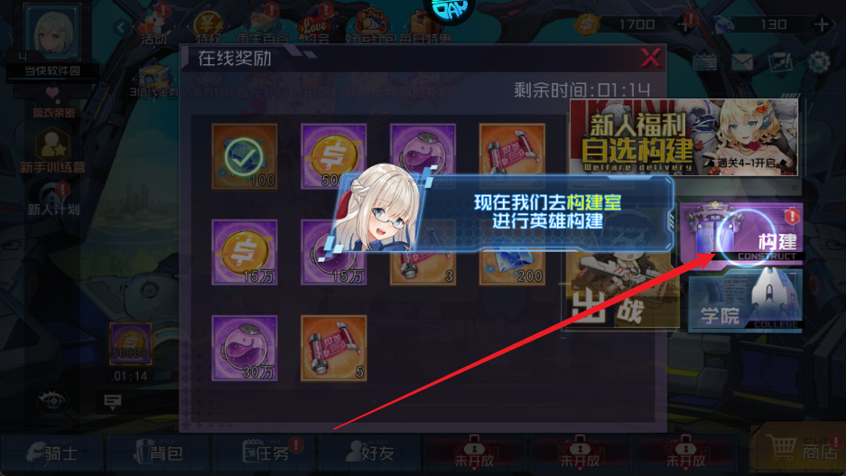 1、进入游戏后,优先前往【构建室】开启女神招募,海量SSR女神低至0.1折入手;