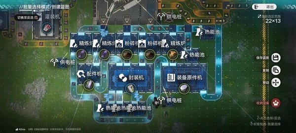 ?? 关键操作提示:首次启用蓝图需手动校准采种机与传送带连接;取货口编号对应明确(1号为植物补给,2/3/6号为紫晶矿,4/5号为源矿),请务必确认矿脉已开发,避免产线空转。