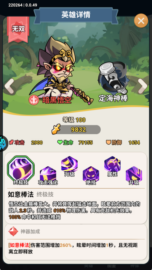 获取英雄专属神器(如孙悟空·定海神针、雷神·风暴战斧),不仅大幅提升面板数值,更能激活独特战斗特效与被动机制,实现质变级能力跃迁。