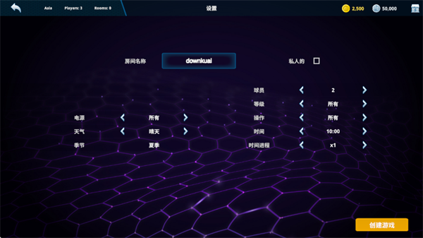 填写房间名称、最大人数等基础参数,完成配置并点击【创建游戏】。