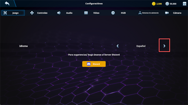 在【juego】分类下的语言选项中,选择对应条目进行切换。