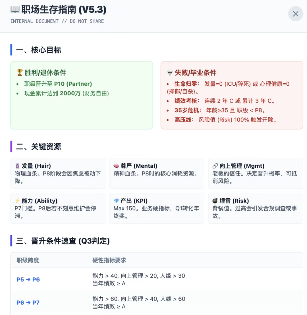 1.职场巅峰:从基层P5稳步晋升至P10(Partner),达成职级天花板成就,解锁“登峰造极”结局。