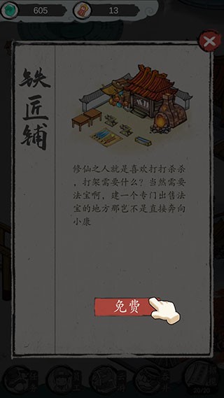 为满足修士对法宝的需求,下一步需修复铁匠铺,补齐门派生产体系。