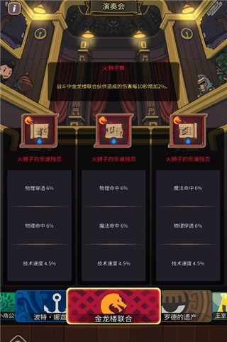 1、在演奏厅中演奏指定势力乐谱,可直接激活对应属性加成,强化角色基础能力。