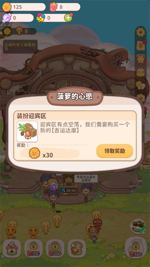启动游戏后,先选择任一支持的登录方式进入;随后可跳过开场剧情(点击左上角即可),快速进入经营环节;在主场景中轻触路上行人,即可主动招揽客人入住;完成系统派发的各类任务,还能稳定获取金币、材料与限定道具奖励。
