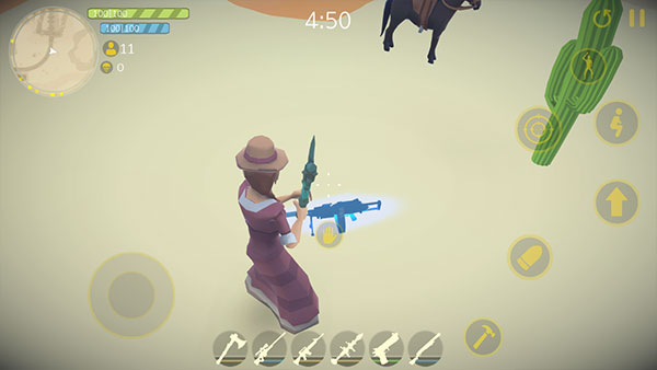 红色西部皇家是一款以狂野西部为背景的射击生存手游,玩家将化身牛仔英雄,在广袤沙漠地图中展开激烈对抗——或凭借精准枪法淘汰所有对手,成为终极幸存者;或搜集资源、建造防御工事,在动态缩圈机制下智取胜利。