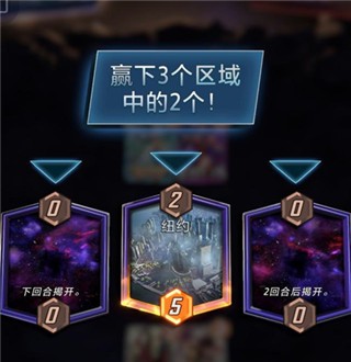每场对局包含三个独立结算的战场,战力点按战场单独计算;部分卡牌技能可跨战场生效,影响全局局势。整场较量共六回合,率先掌控其中两个战场即判定获胜。