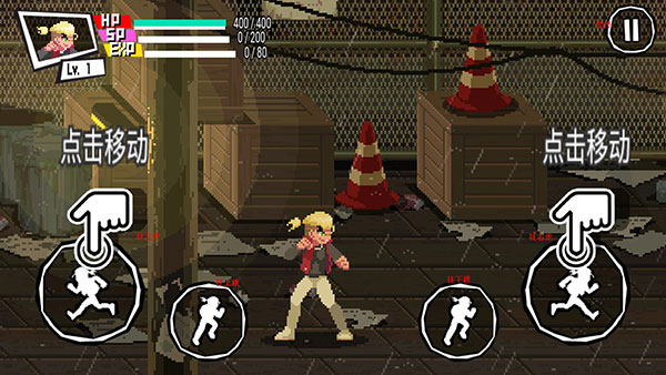 街道关卡采用极简操作逻辑:左右虚拟键控制移动,中央图标切换上下行动轨道——按键虽少,但响应流畅、节奏紧凑。