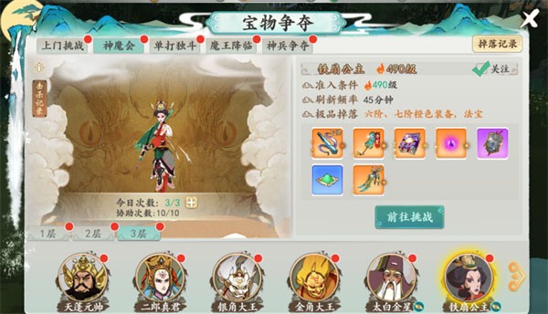 2、神魔会:每日限三次参与机会,是获取法宝碎片的核心副本。