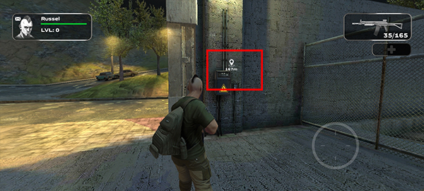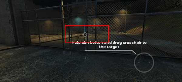 抵达目标门前,调出右侧瞄准镜,精准锁定门锁后执行强击破门。