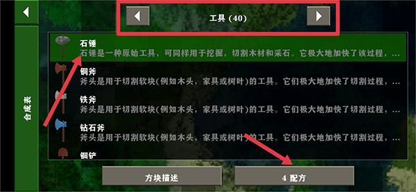 例如制作石锤,页面将清晰列出全部原料种类与数量要求。