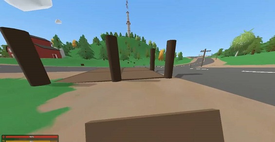 第一步:采集木材并合成柱子,在预设房屋轮廓四角依次放置支撑结构;
