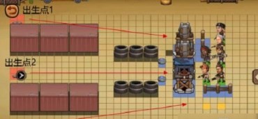 最终关卡中,1–3号出生点为普通地面丧尸,4号则为携带气球的飞行单位。建议两侧栅栏各留单缺口,由双坦克驻守;右下角部署1–2座炮台专攻空中目标;卡妈与奶妈位置可互换,确保输出节奏更连贯、更稳定。