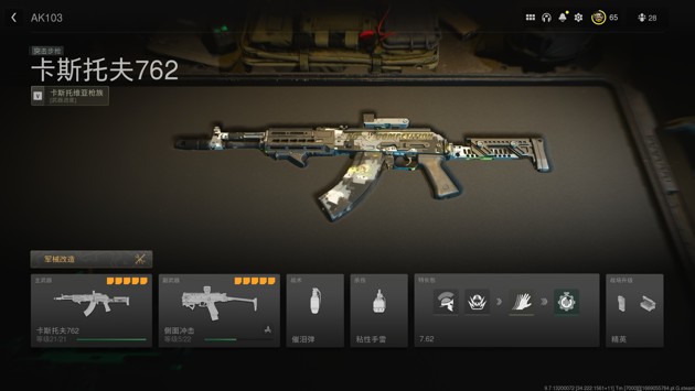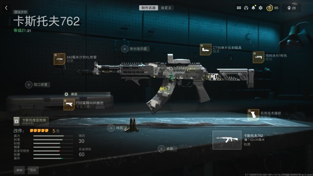 卡斯托夫762(即现实中的AK-103),发射7.62mm弹药,中近距离具备三发毙敌能力,TTK表现优异,抬枪响应速度居中,泛用性强,适配多数实战环境。