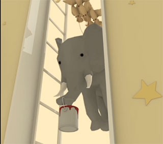 第一步:前往树屋房间,点击墙边机关,按画板提示↑→↓↗输入方向密码,随后点击大象获取【油漆桶】。