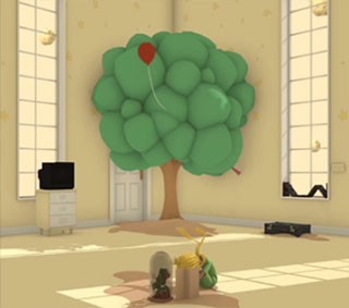 第三步:进入国王房间,首层柜子密码为各色气球数量组合“153”,获取【针】;用其刺破树上气球,得【钥匙】,开启红箱取出【扳手】。