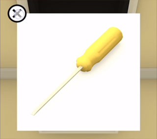 第六步:持【螺丝刀】撬开【油漆桶】,蘸取油漆后点击吸烟标识,拾取烟斗把手。