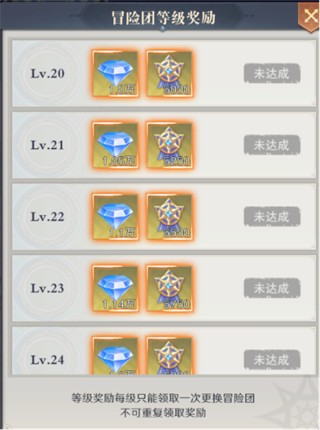 附:冒险团等级对应奖励详情
