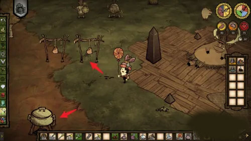 回血方式多样:优先解锁【一本科技】,以此为基础推进至【二本科技】;再通过二本科技制作【烹饪锅】或【晾肉架】,加工食材获得高回复食物;同步可在生存制作栏中直接合成回血膏药;此外,夜晚进入帐篷睡眠亦可稳定恢复生命值——该过程会消耗饱食度,但老奶奶角色不受此限制;若选择黄昏时段就寝,则能边掉饥饿边持续回血。