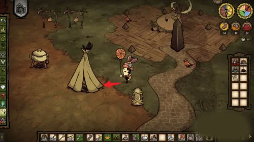 夜晚并非空闲时段,而是关键策略窗口:首要任务是保障照明——火把、火堆、火坑及矿工帽等均可驱散黑暗,避免被夜行生物袭击;其次可利用帐篷睡眠,同步恢复精神与生命值(代价为少量饱食度);还可趁夜深入矿场挖掘资源,只需布置火堆提供光源即可高效作业;地洞探索同样适合夜间展开,定位地图上的大理石并凿开即可进入;月圆之夜更富策略性:猪人村中猪人转为狂暴状态,击杀必掉稀有猪皮,用于制作防具或武器;同时可在切斯特九格内各置一颗蓝宝石,待月圆自动升级为冰箱切斯特,实现保温石预冷,助力夏日降温。