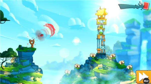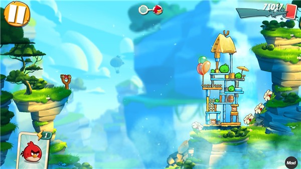 【新手入门】操作简洁直观:按住屏幕左侧弹弓拖拽蓄力,松手发射;飞行途中点击任意位置即可激活对应小鸟专属技能。角度、力度与技能释放时机均由玩家自主掌控,弹道轨迹实时显示,便于精准调整。单关使用小鸟越少,最终评级越高。