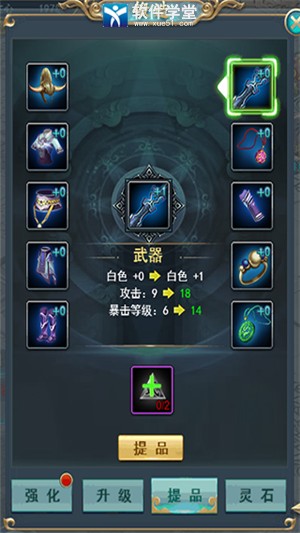 二、提品:所有装备初始品质为白色,提品同样按防具、武器、饰品三类独立进行,需使用对应品质提升碎片。品质共设白、蓝、紫、橙四阶,每阶细分为五星,须满星后方可跃升至下一品质。防具提品碎片可在斗仙台·斗仙商铺中以仙元兑换;饰品与武器碎片则通过小洞天消耗洞天元灵获取。提品不仅同步提升三项主属性,更可激活并增强副属性——该机制显著丰富技能组合策略,大幅提升实战多样性与养成深度。