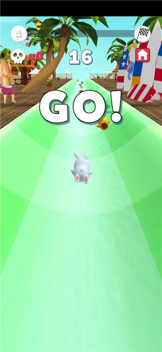 第四步:控制角色持续前进,全程避开四周障碍,全力保持领先位置。