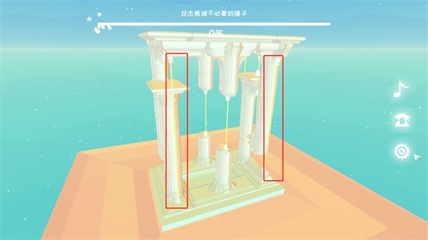 第三关:分步操作——先剪断四个角上的绳索,再滑动视角至侧面,快速剪断剩余两根短绳;全部剪断后进入校验阶段,校验完成即通关。