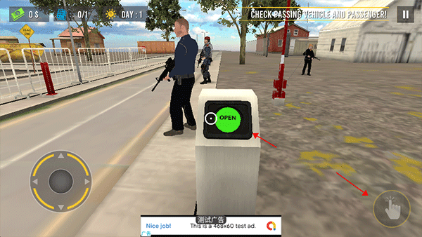 全部标记点完成后,抵达控制闸口,对准“Open”标识,点击右下角手势图标,即可放行前方车辆。