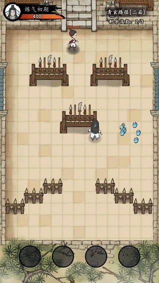 在“天官赐福”技能选择环节,可依加成类型自由挑选;前期无压力试错。进入历练关卡后,滑动摇杆控制角色移动,进入攻击范围即自动释放技能。