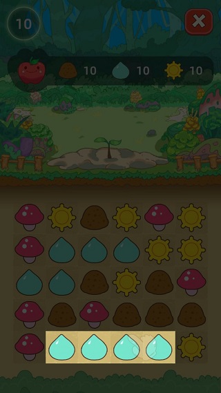 第二步:育苗需同步调配土壤、水分、光照与肥料四大要素;不同果树对养分组合有差异化要求,而水分则通过连线消除方式高效获取。