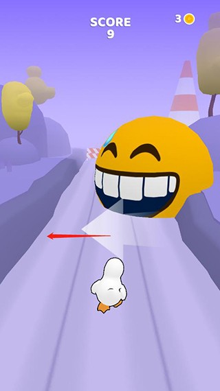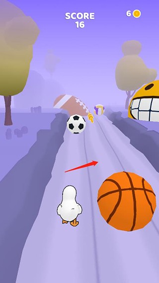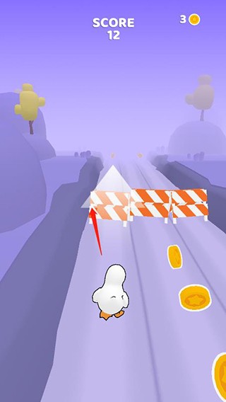 操作基于经典跑酷逻辑:通过上下左右滑动屏幕控制鸭子移动方向——例如前方出现低矮障碍时,向下划动实现蹲伏闪避。