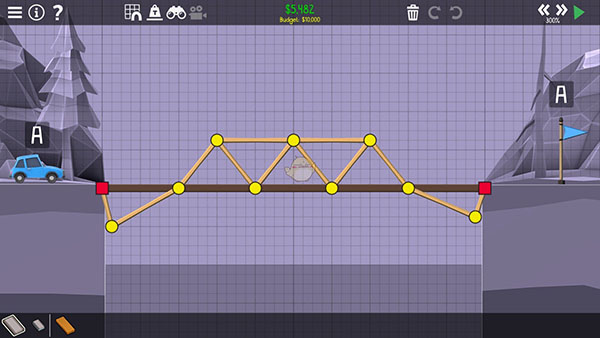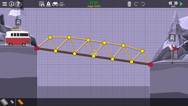 松林山峰钢铁大桥攻略:启用更高强度钢材替代木材,预算提升至24000,兼顾结构可靠性与造价控制。