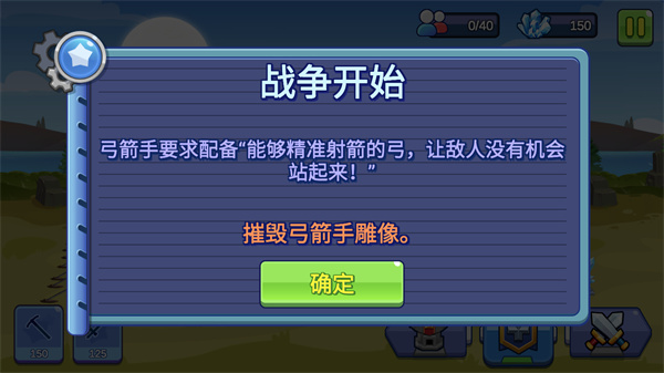 第三步:战争打响,优先为弓箭手装配精准射程弓具,压制敌方行动,核心目标是摧毁敌方弓箭手雕像。