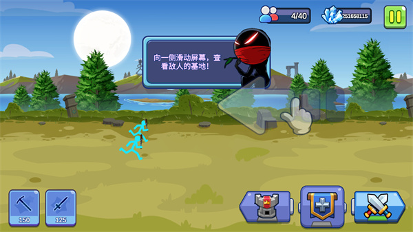 第八步:向右滑动屏幕推进至敌方基地,已部署的棍棒手将自动发起进攻。